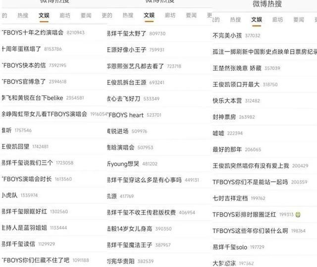 TFBOYS十周年演唱会当天,数不清的热搜